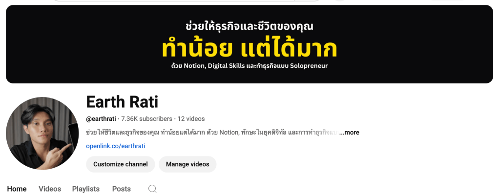ปัจจุบัน ณ เวลาที่ผมเขียนบทความ ผมอัปโหลดคลิปเพียง 12 คลิปเท่านั้น ก็มีผู้ติดตามใน Youtube กว่า 7.36K คน และทำเงินให้ผมจากการขาย Digital Product รวมแล้วหลักแสนบาท